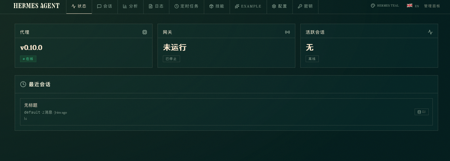 Hermes Agent 的面板,目前不能直接对话,主要用来配置和检查状态。