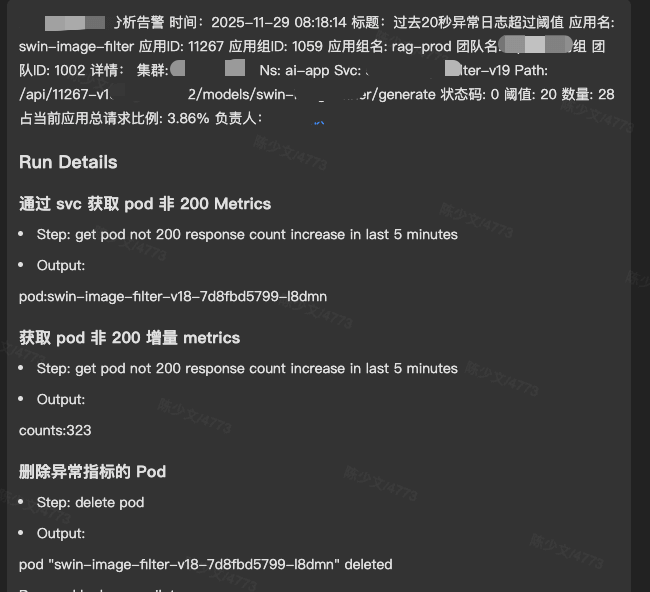 在前面我们做了很多巡检 Agent 查询资源,将查询到的信息给 AI 就能提取到关联的信息。不停查询,不停分析,一直找到达到要求的根因为止。