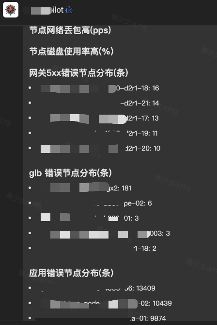 类似的自动处理,我们有应用层的异常负载删除、节点层的磁盘清理、GPU 掉卡屏蔽卡、屏蔽节点等。先找出团队中遇到得最多、需要最多人力的事情,对其进行自动化处理。你可以认为,此时 Agent 就是 LLM + SOP,模型帮你选择合适的标准流程处理标准的故障得到标准结果。