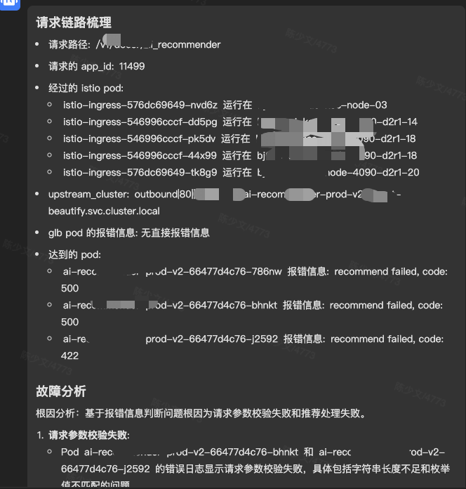 对于一些开放式的根因分析,才是 AI Agent 的主战场。已经有前面的铺垫,你已经建立了若干故障标准的处理流程,还能进行各种集群、节点、中间件、网络的巡检,剩下的交给 AI 去分析。